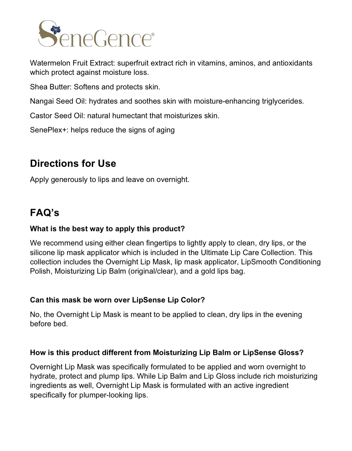 • Melts into lips to protect them throughout the night