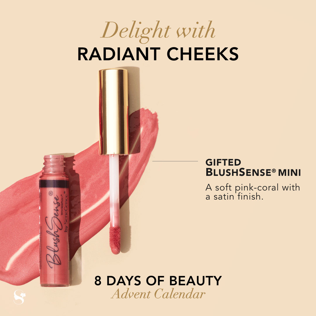 This season you will experience the most enchanting 8 Days of SeneGence Beauty filled with a collection of vibrant colors. The customized advent calendar has 8 perforated doors that reveals brand-NEW shades and colors ONLY available in the calendar and/or from the limited-edition Holiday 2023 set. Each new day brings the joy of a mini–Lip Gloss, Lip Color, ShadowSense, BlushSense, or Nail Polish. This mini-collection contains versatility for creating a gorgeous full festive look that’s flattering all year round or for showing off the fun holiday glamour. Perfect for captivating smoky eyes, a classic red lip, a flushed cheek with pink-coral tones, and sparkly nails with a winter wonderland appearance. Embrace the element of a dazzling surprise with 8 days of NEW mini-colors packaged in a festive calendar.