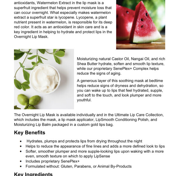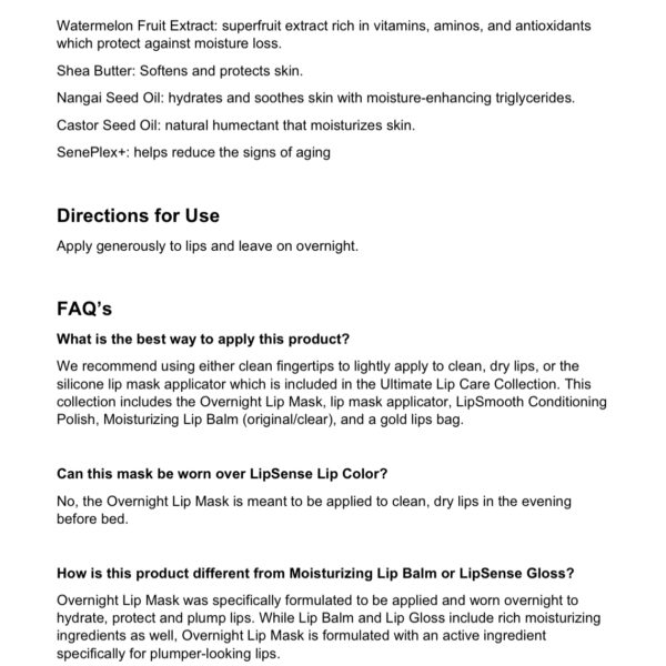 • Melts into lips to protect them throughout the night