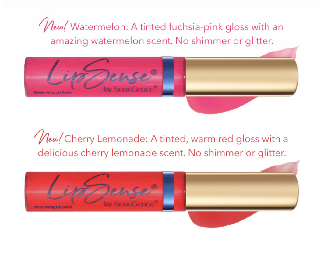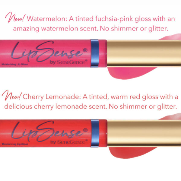 🍒 New! Cherry Lemonade: A tinted, warm red gloss with a delicious cherry lemonade scent. No shimmer or glitter.