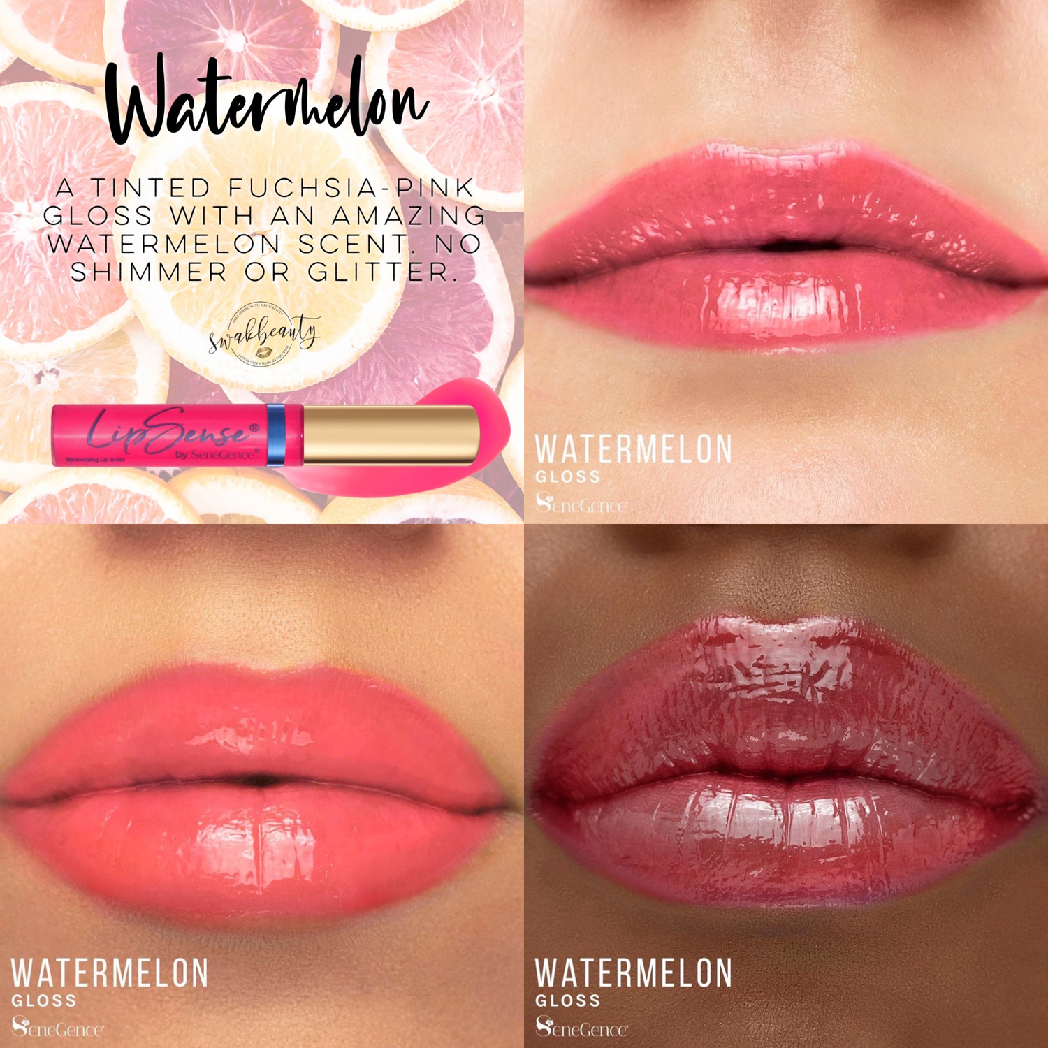 🍉 New! Watermelon: A tinted fuchsia-pink gloss with an amazing watermelon scent. No shimmer or glitter.